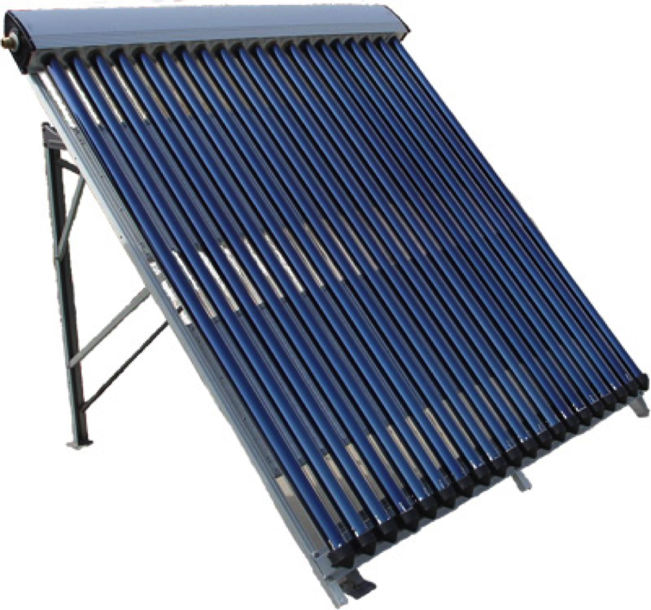 3. Colector de tubos de vacío: este tipo de colectores alcanzan temperaturas mayores que los colectores de placa plana. Pueden alcanzar temperaturas de hasta 100°C, son idóneos para la generación de agua caliente en procesos industriales. Otro uso que se les puede dar es el de alimentar una instalación de calefacción con radiadores convencionales o para calentar el fluido de entrada de una caldera. Su funcionamiento es idéntico a los de placa plana sustituyendo el vidrio exterior de éstos por los propios tubos que contienen en su interior las tuberías que transportan el fluido, al encontrarse al vacío no hay transmisión de calor al exterior por lo que tienen una eficiencia mucho mayor. Son los más aconsejables para climas con menor radiación solar.