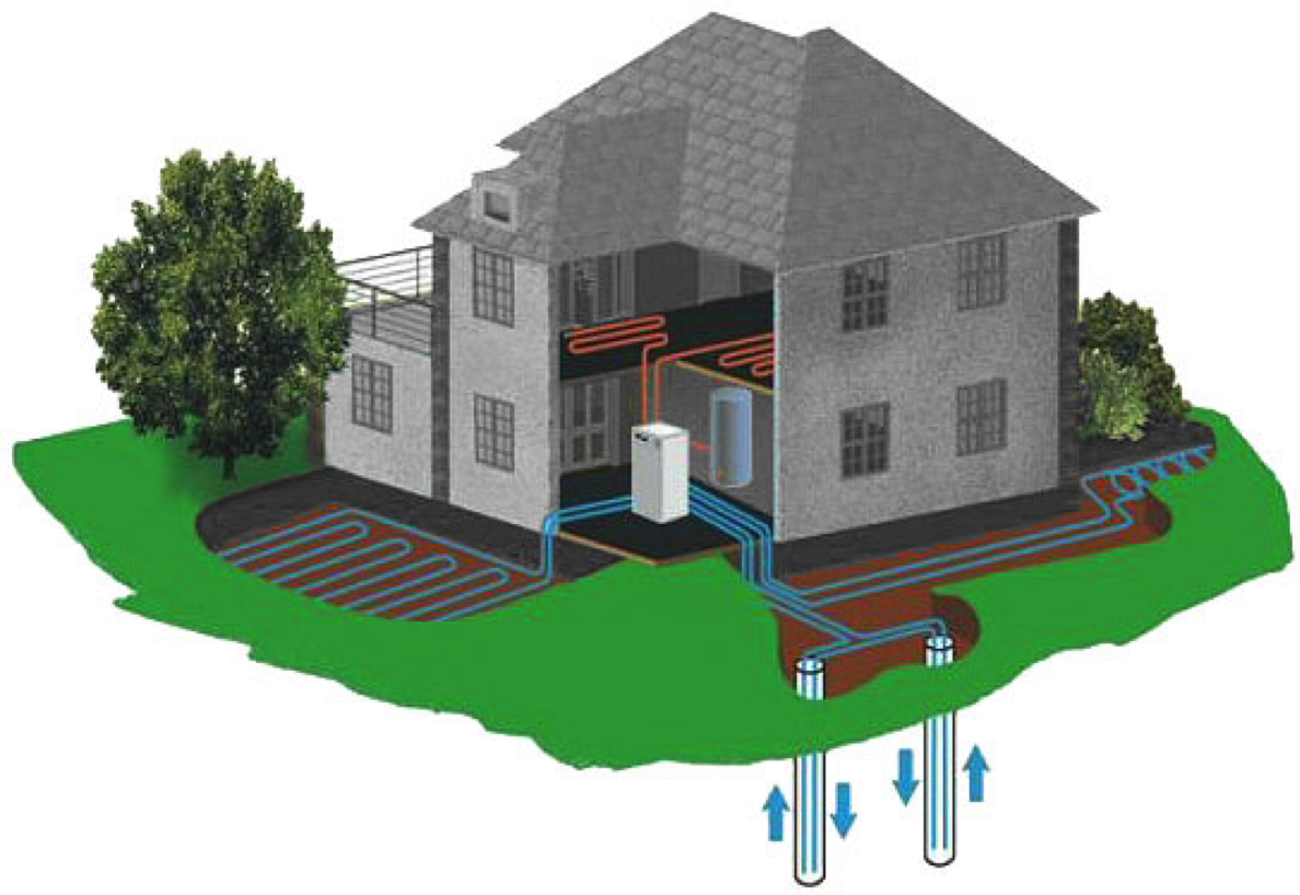 Imagen: Instalación geotérmica uso de suelo, horizontal, vertical y suelo radiante. Fuente: soliclima.com