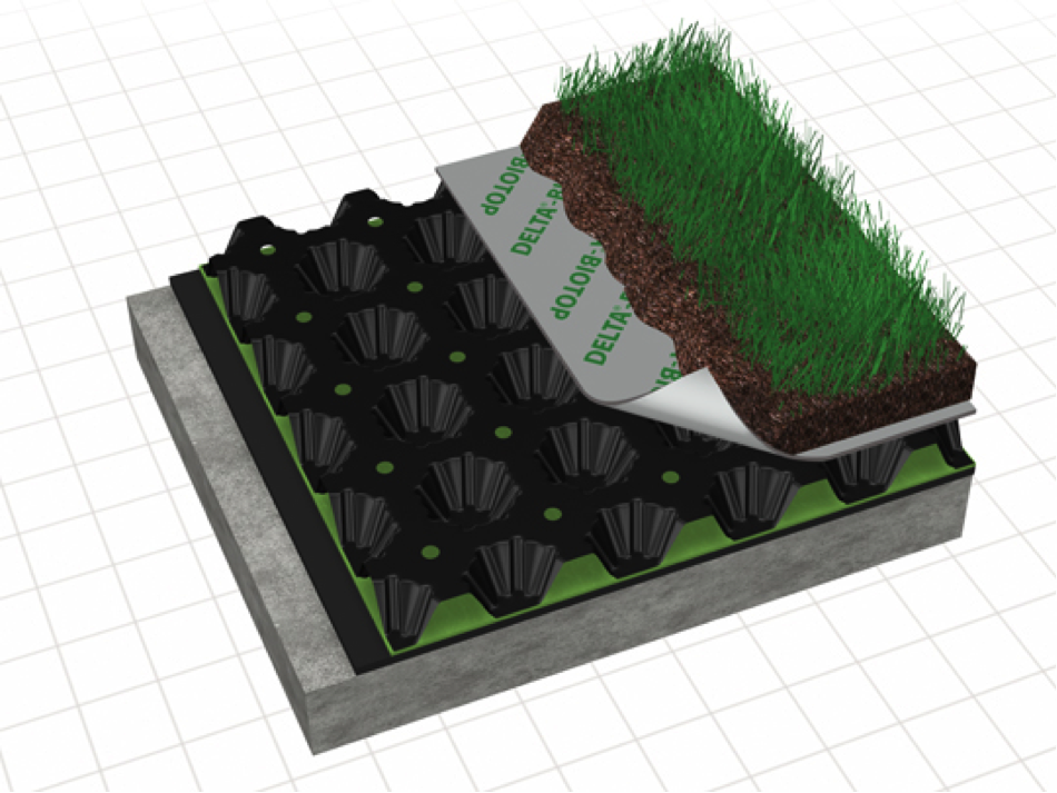 Imagen: Ejemplo capa drenante “DELTA-FLORAXX”. Fuente: cosella-dorken.com