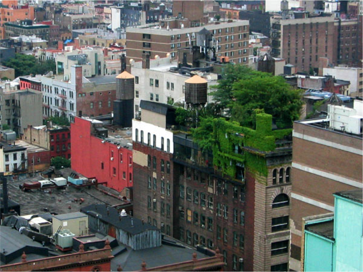 Imagen: El verde se abre paso en la cubierta de un edificio en Manhattan. Fuente: Alyson Hurt