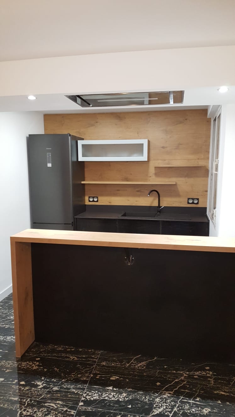 Cocina alemana a medida, terminación de solado con porcelanico portoro.